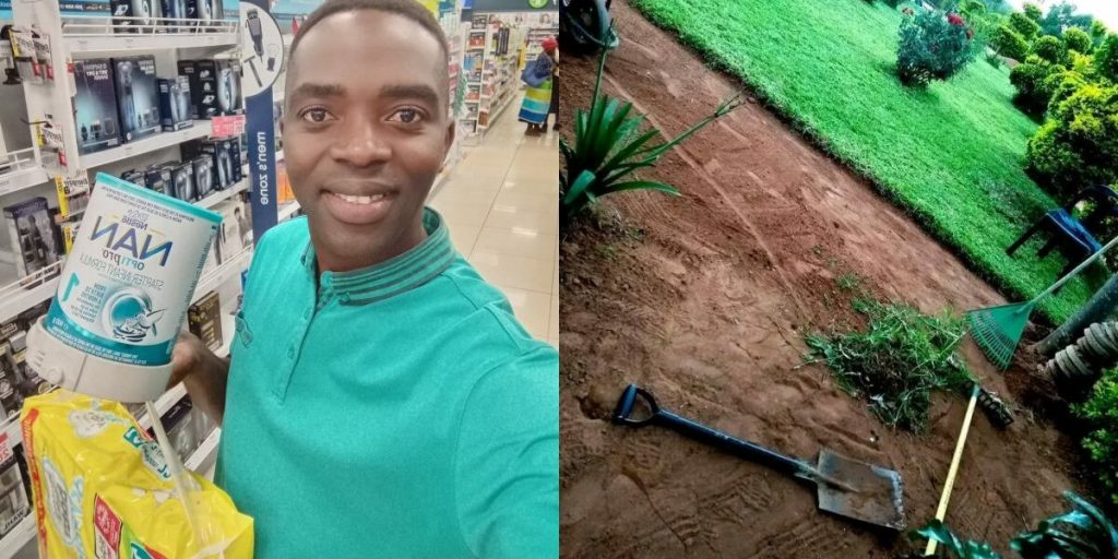 The man, known on X as @Trevor_sidogi, revealed that he cleaned someone’s yard to earn enough money to buy baby food.