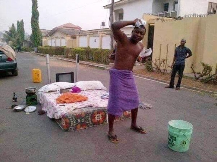 Nigerian Man has been cooking, bathing & sleeping on the street in protest of the February 23rd presidential election. Says he won’t leave until Atiku is declared President.