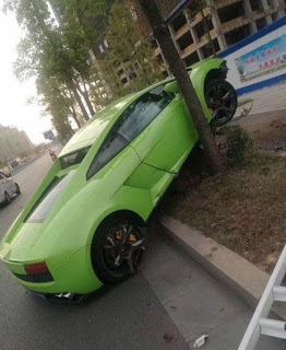 A drunk man who tried to impress a woman he met at a bar raced after her in a rented Lamborghini – but then crashed into a tree.