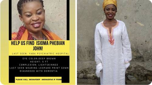 “Yesterday we went there, we asked them, they said she should get some pictures, we printed them, took the pictures there, pasted some at the gate, we went to the police station, Sabo Police Station and they said it’s only when it’s over 24 hours which it was because it was exactly at 4 pm my brother couldn’t find my mum on Friday.