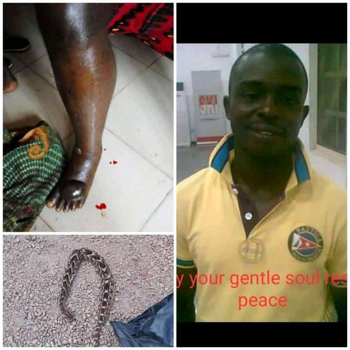 Someone called him to inform him about his crops been eaten by pigs, and getting to the farm that evening just a stone throw from the house , he saw the giant snake and immediately went back, according to him, the snake flew towards him and he got bitten, he was brave enough to kill the same snake but could not survive it.