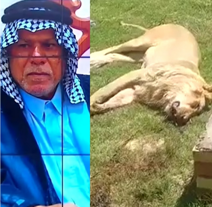A clip of the dead lion in the garden is also making rounds on social media, raising concerns about how al-Din was able to keep the wild animal on his property.