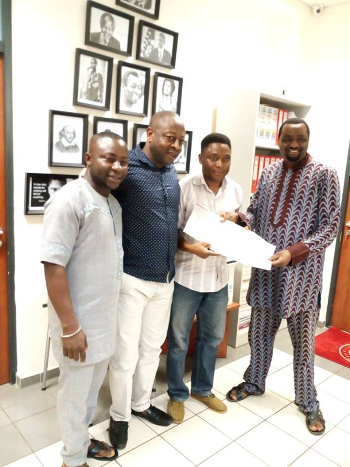 The letter was jointly presented by two aides of Sen Dino Melaye, Comrades Ahmed Yackson, Rotimi Adedayo, flanked by the elder brother of the new appointee.