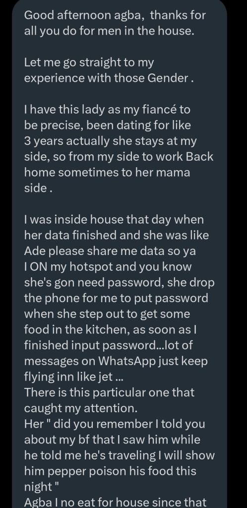 According to him, the relationship, which lasted about three years, came to an abrupt end after he accessed his fiancée’s WhatsApp messages and uncovered her infidelity.