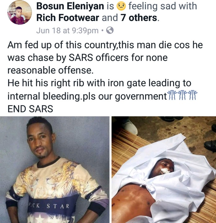 However, upon sighting the SARS operatives, many people, including the late Opeyemi, started fleeing, but he hit his ribs against an iron gate. He was said to have later died as a result of internal bleeding.
