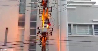 A man believed to be a street beggar in his 20s, got electrocuted after scaling an electric pole ahead of a speech by suspended Brazilian president Dilma Rousseff. The unnamed victim, who was wearing just a pair of beach shorts, appeared to be entertaining the crowd, as they waited for at the political rally in Aracaju, Brazil. After spending several minutes clinging to the pole and waving a flag, he ignored warnings from bystanders to get down and climbed further up the pole towards the danger area where the electricity cables were attached.