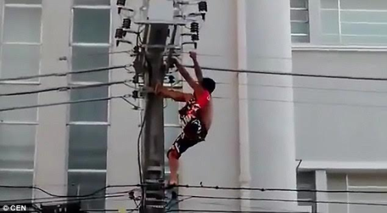 Man gets electrocuted after climbing an electric pole to entertain people at a political rally (see photos)