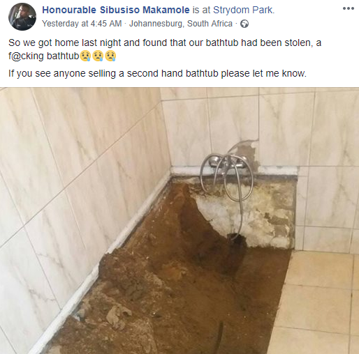 A man was shocked when he returned home to find his bathtub gone and he shared a photo for his friends on Facebook to see and believe his story.