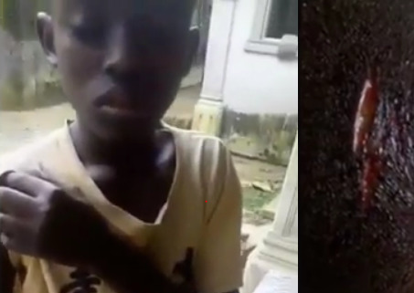 A little boy, identified as Emediong Victor Urau, is nursing numerous wounds on his head and body after his dad attacked him with a machete at Mbiaobong ikot Antem off Oron road, opposite the house of the village head, Solomon Essien, in Akwa Ibom state. The incident happened yesterday and according to a neighbor, Victor’s only offense was going out to play with other kids. It was gathered that the boy isn’t new to unwarranted brutality from his dad and stepmother.