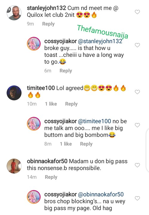 Cossy who doesn’t hesitate to fire back at any of her followers who Insults her, gave it back to them.