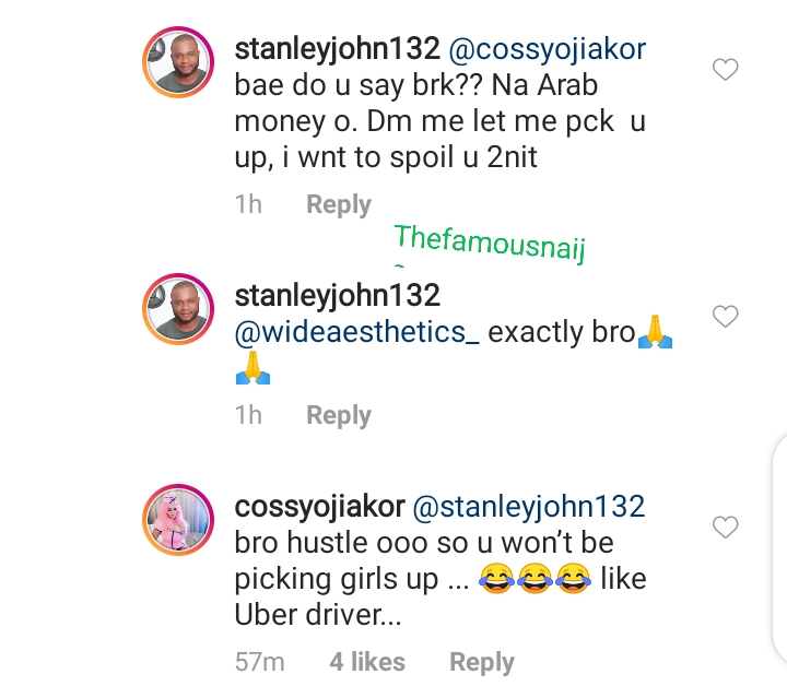 But Cossy Ojiakor felt that the guy doesn’t know how to toast a lady and also tagged him ‘broke’.