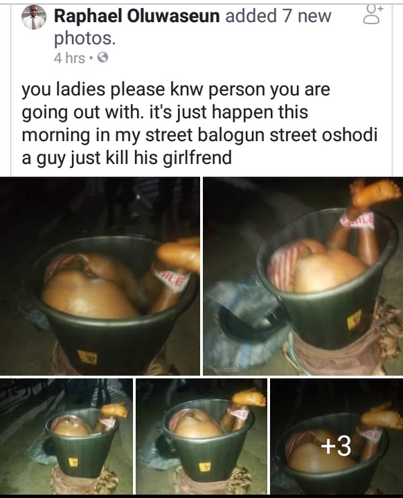 ‘you ladies please knw person you are going out with. it’s just happen this morning in my street balogun street oshodi a guy just kill his girlfrend’