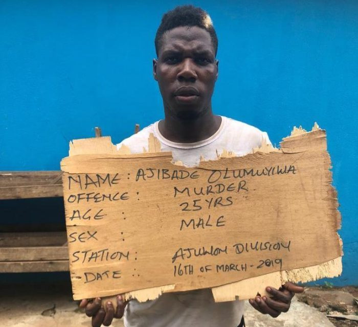 The Ogun state police command has arrested 25-year old man, Ajibade Olumuyiwa, pictured above, for allegedly killing one Olakitan Balogun, who he alleged was having an affair with his wife.