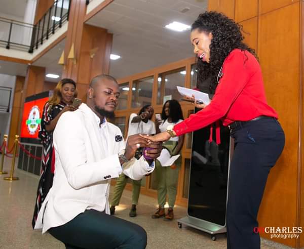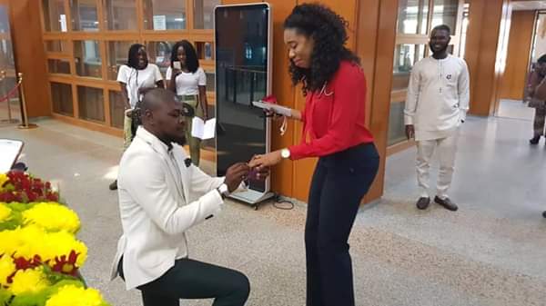 A Nigerian lady identified as Bongy Usun took to Facebook to share the story of how her boyfriend proposed to her today while she was at work and wrote….