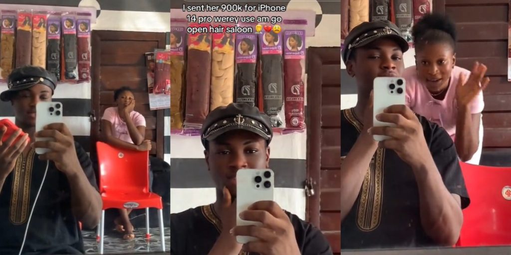 A young man has lamented after his girlfriend used the N900k he sent her to buy an iPhone 14 Pro to open a hair salon.
