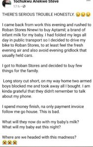 He went to a supermarket in Nnewi to buy the milk and other supplies for his family.