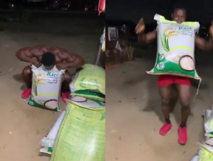 A Nigerian man has gone viral after boldly declaring that he would lift six big bags of rice using nothing but his teeth.