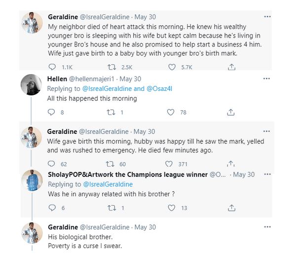 The Twitter user claims the deceased lived with his wealthy younger brother and knew his brother had been sleeping with his wife but kept calm because his brother is his benefactor.