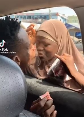 The young girl who seemed uncomfortable with the demand of the young man had no option but to oblige so she can get the money.