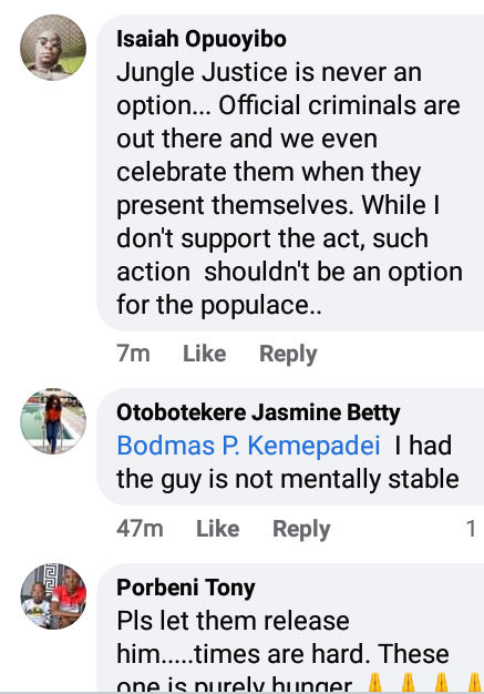 Reacting to the incident, some people said the man should be set pardoned while others opined that theft is a crime and should not be condoned no matter the gravity.