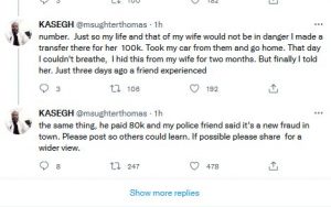 That day I couldn’t breathe, I hid this from my wife for two months. But finally I told her. Just three days ago a friend experienced the same thing, he paid 80k and my police friend said it’s a new fraud in town. Please post so others could learn. If possible please share for a wider view.”