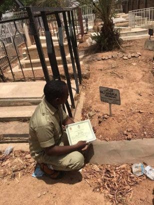 A Nigerian man has touched many hearts with a photo of him presenting his NYSC certificate to his late mum at her grave.