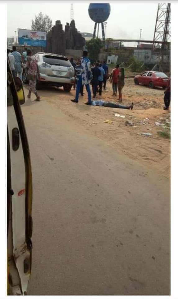 It happened at warehouse junction Owerri, a taxi driver reportedly hit a Lexus Jeep, the owner of the Jeep, a young man out of anger jumped out of his car and punched the taxi driver to a point he collapsed to death. See pictures attached.