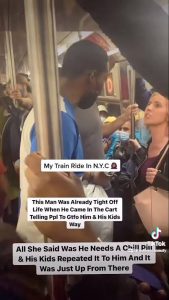 A viral video shows the moment a man taking the subway with his children in tow socks a woman in her face for telling him to ‘take a chill pill’ in the latest violent attack on a straphanger in crime-plagued New York City.