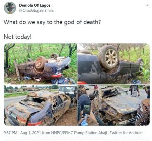 A Nigerian man is full of thanks to God for saving his life after a terrifying car accident.
