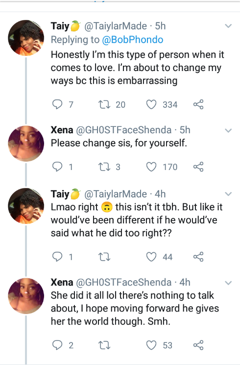However, Phondo received more of backlash than praise from ladies on the micro-blogging for only talking about “her love for him but nothing about his love for her.”