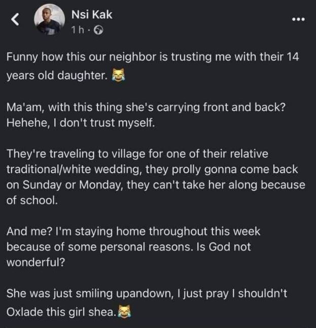 Man Sexualizes 14-year-old Neighbour Entrusted To Him And Reveals He Doesn't Trust Himself Not To Inappropriately Touch Her - 9jaflaver