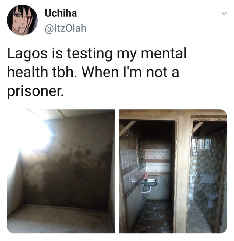 The man who lamented that the house looks like prison, cried out because of the huge rent involved. The man, identified as Olah on Twitter, said he was offered the “prison” for N250,000, adding that Lagos State is testing his mental health.