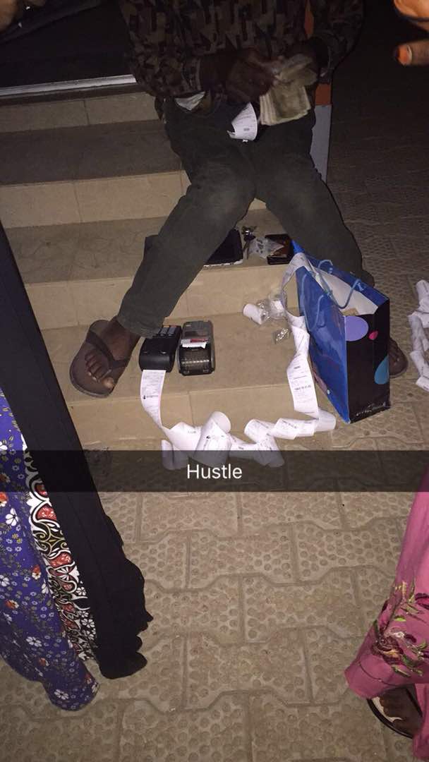 A young Nigerian man start a brisk business at the front of the bank Atm Machine, sitting with his POS to gives cash to people who are unable to withdraw their money at the Atm machine In Abu Zaria.