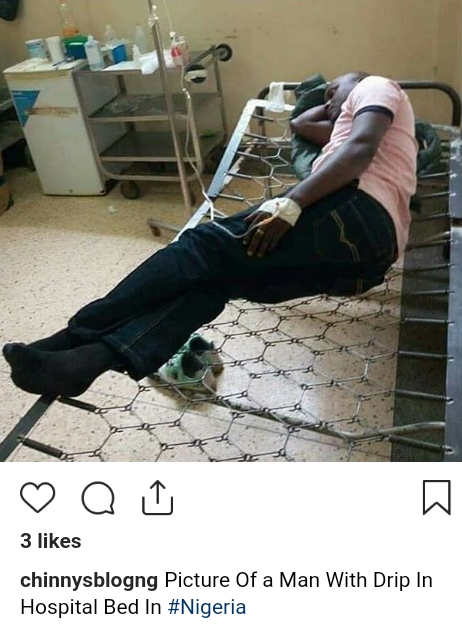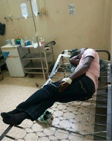 Nigerian man Pictured sleeping on a bare Bunk without bed While taking Drip In Hospital Trends online.