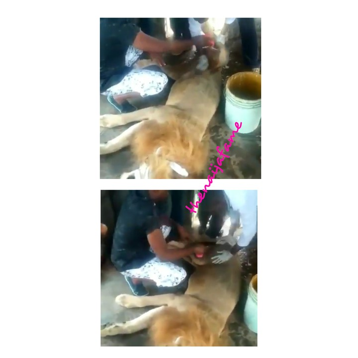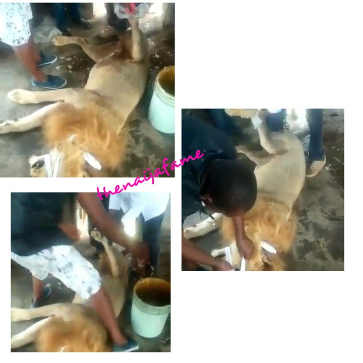 The pet love who cannot bath his lion only him decided to call his friend to assist him in batting the lion in Lekki, Lagos State.