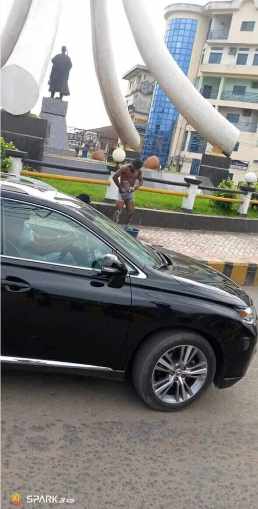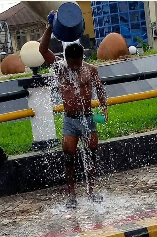 Chelsea fan spotted bathing publicly in Onitsha after he predicted that Chelsea will win Leicester City if not he will bath in public thoroughfare in Onitsha.