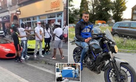 Another onlooker told the BBC the incident had involved a number of high-end cars, including a Lamborghini, a Ferrari and a black Range Rover, and two quad bikes.