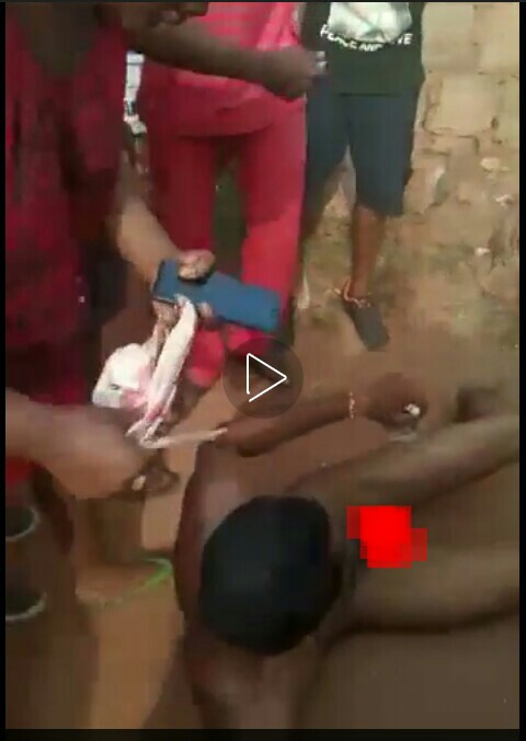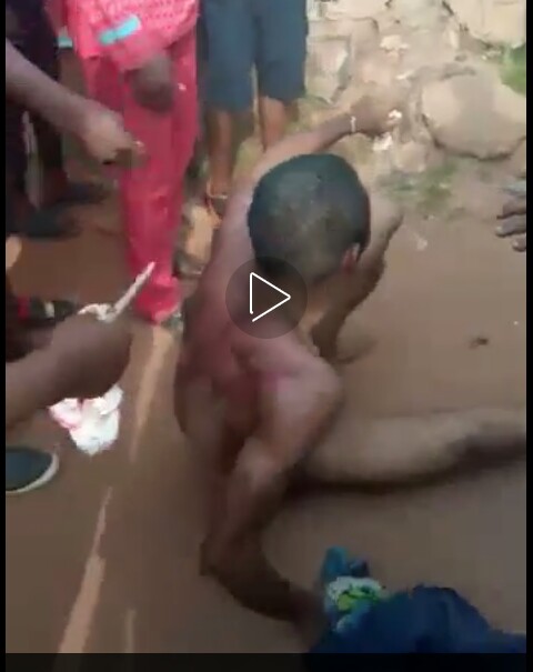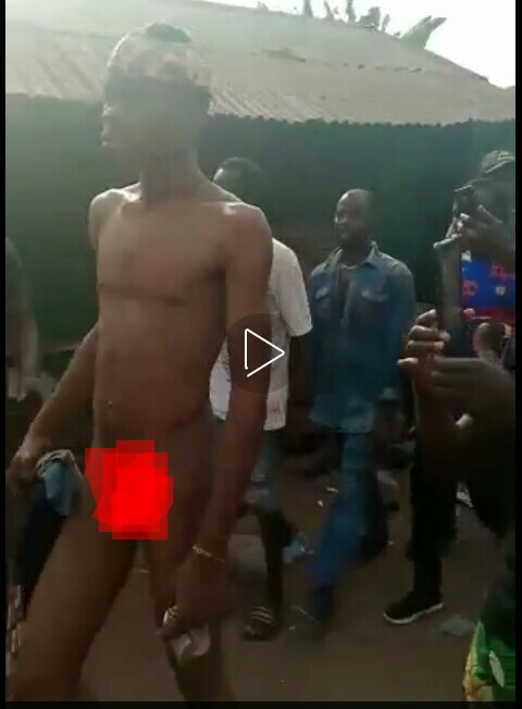 A man was stripped unclad after caught stealing female panties in Edo state.(Agbo Pack)