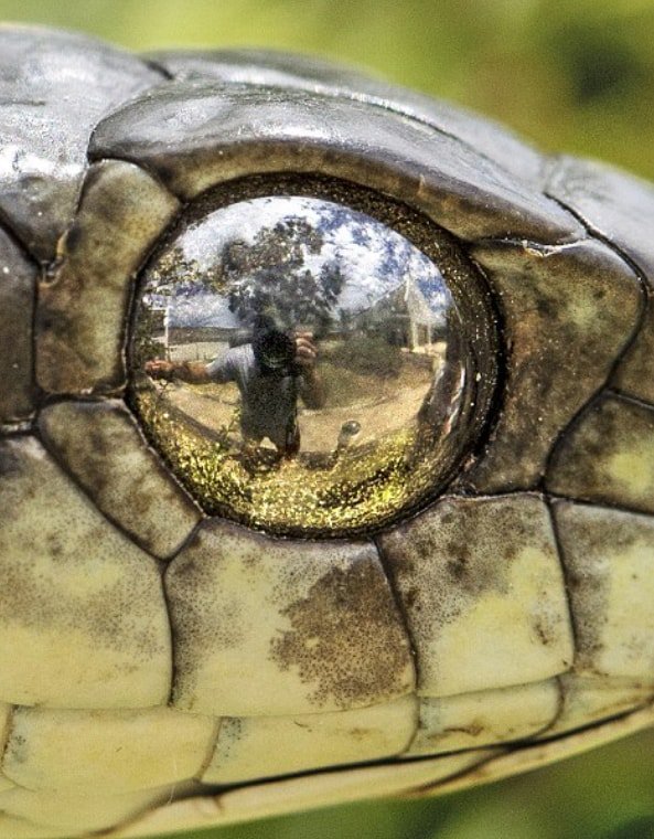 Picture in the eye of Africa’s deadliest snake specie, Boomslang is 26-year-old Gerhard van der Westhuizen.