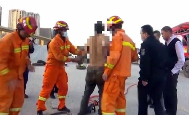 Li Haonan, a firefighter at Luosiwan Fire Brigade, said: “We couldn’t use heavy machinery because it could injure the man, so our team of four, five members had to use a hammer to pry open the manhole, which is blocked by the cement around.