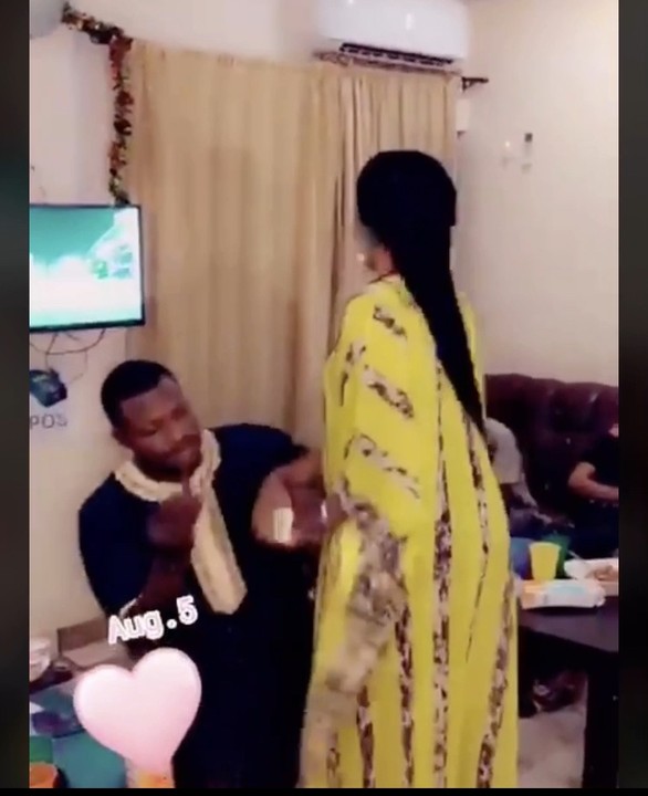 In the video shared online, the lady was heard telling him to stop the proposal and get up on his feet, but he insisted on engaging her.