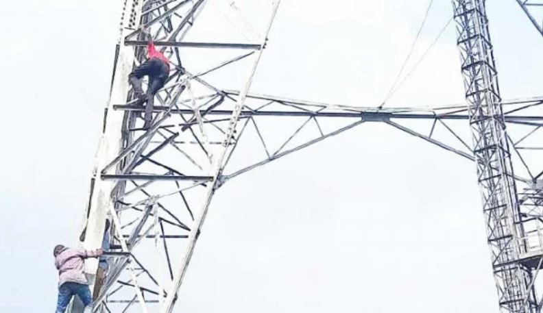 A businessman in the area, who did not want his name in print, said, “He went up there with a rope. He tied the rope there to hang himself. We begged him until he managed to come down.”