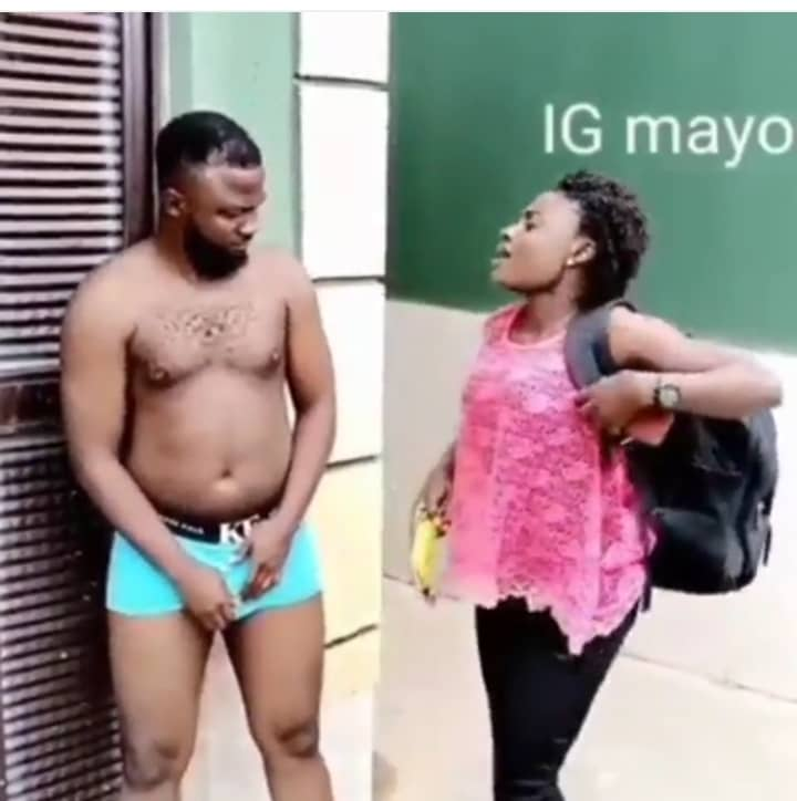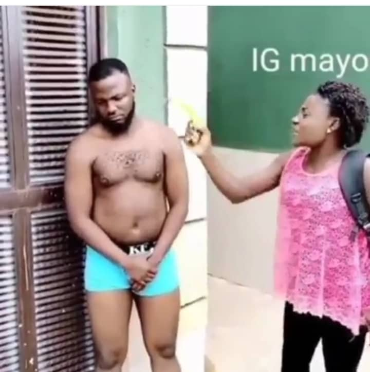 This is a very hilarious video by Nigerian Comedian and actor, Mayordona where he wore banana to make his joystick look huge for the ladies.