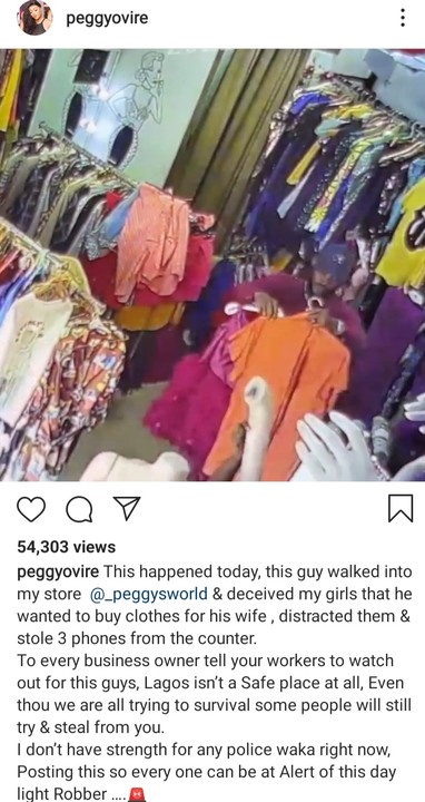 This happened today, this guy walked into my store @_peggysworld & deceived my girls that he wanted to buy clothes for his wife , distracted them & stole 3 phones from the counter.