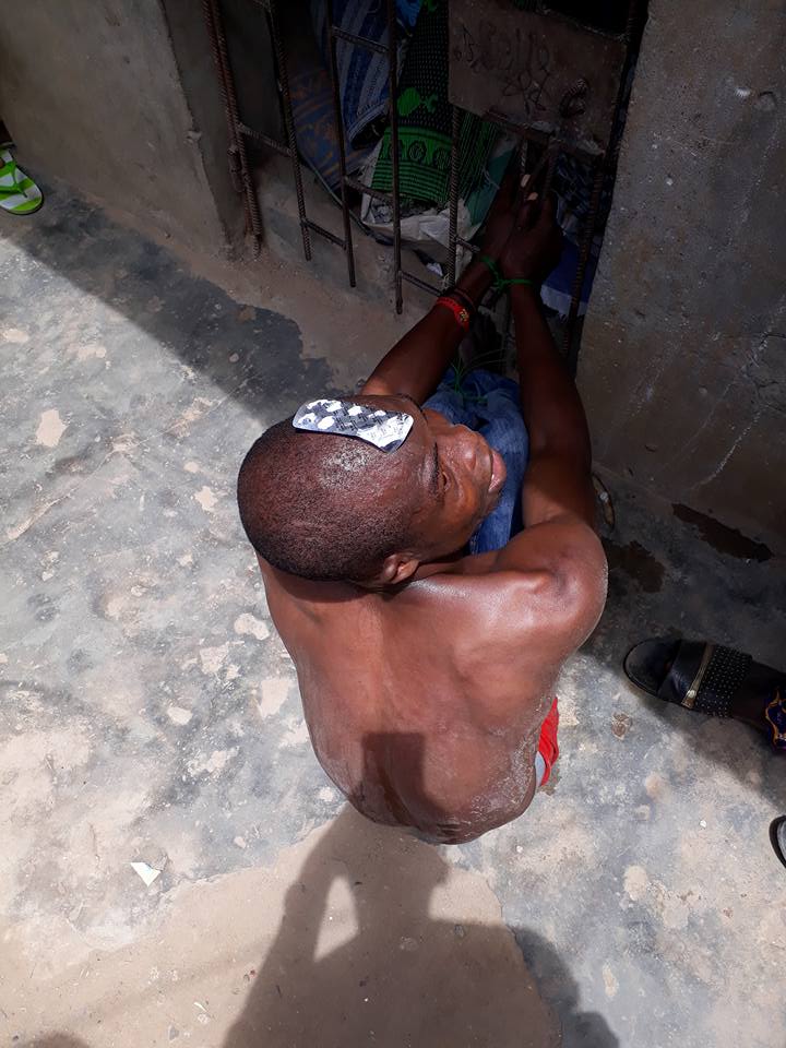 Water was poured on him and food (garri) given to him as those who tied him up did all they could to bring him back from the “excited state”.