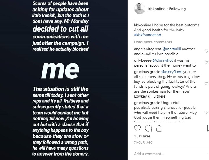 Recall that the Man whose son has days to live, had accused of beating him up when he sat with his sick baby at Rivers Government House gate. His viral video and photos led to the launch of donation accounts for him, and according to Kokun Foundation CEO, over N70m was raised.