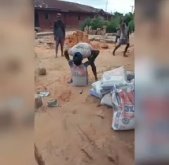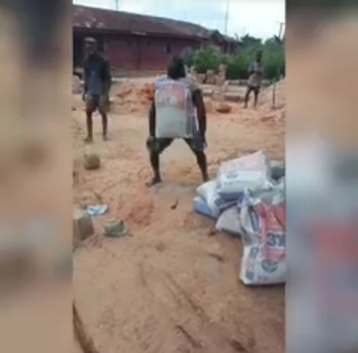 The labourer who was walking for just N2,500 had an argument with his colleague and the owner of the site decided to place a bet of 100k for any of them who can really carry the cement with his teeth.