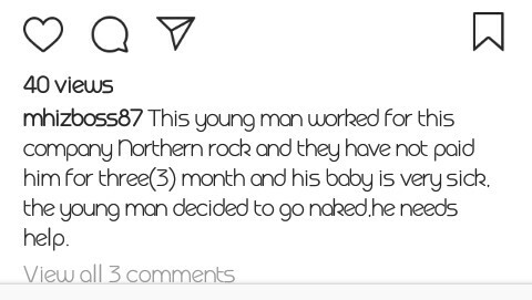According to reports, the young man worked for this company “Northern rock” and they have not paid him for three(3) months and his baby is very sick.