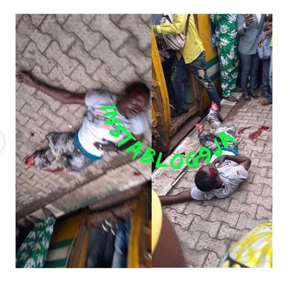 A middle-aged man has lost his two legs after jumping down from the top of a moving train, today, at Ikeja along, Lagos.