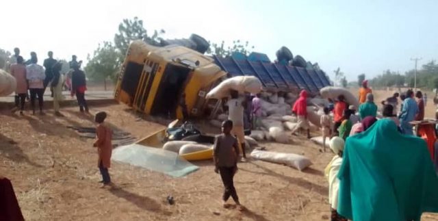 A trailer loaded with ginger skidded off the road and crashed at Nahuta in Darazo Local Government Area of Bauchi State spilling its content on the road.